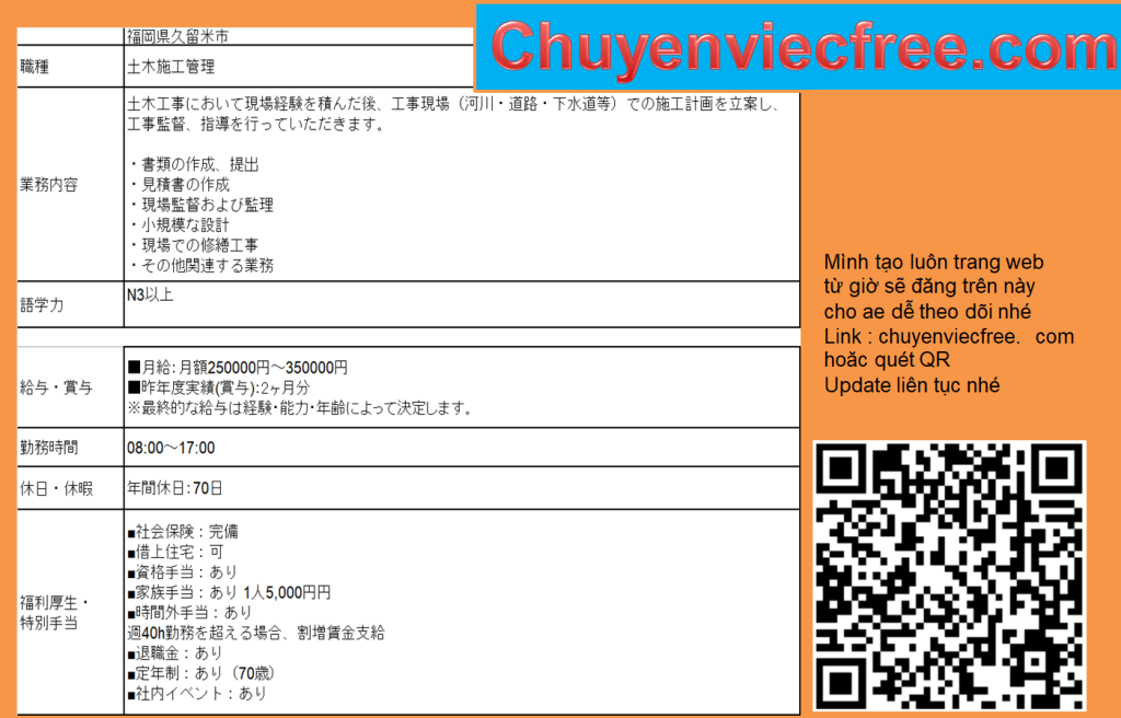 - 9727 Fukuoka QLTC 25>35mQLTC/ Thi công 土木 Lương 25> 35Man Deal lương theo năng lực Phụ Cấp Có Nhà/ Kí Túc Yêu Cầu N4 Cứng Kinh Nghiệm Đào tạo từ đầu 年収 350>450 Bằng Xây Dựng