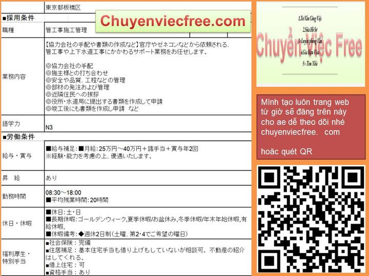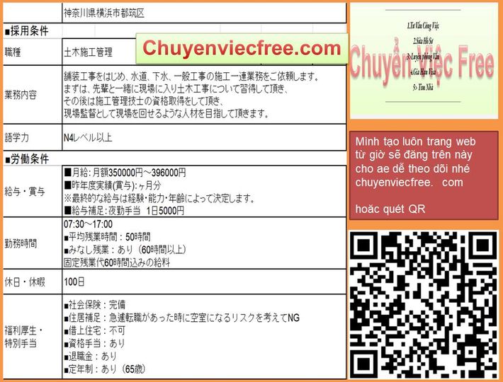 - 16680 ToKyo ItaBashiQLTC/ Thi Công 50 50 Công trình về đường ống nước, đường ống thông gió trong nhàNenshu Max 550Y/c Kaiwa N3Có KN về 土木・管工KN Thi Công Cũng OK