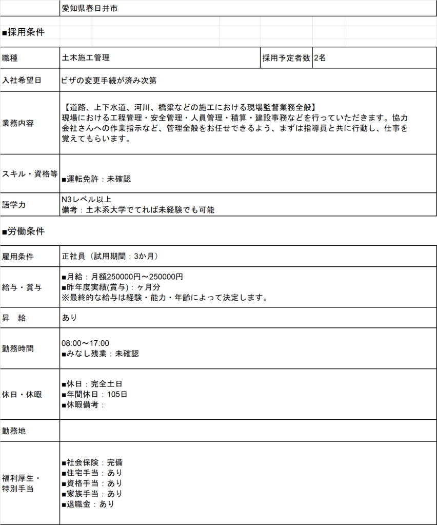 - 1490 Aichi 土木QLTC/ Thi Công Cầu Đường Lương 25 Man > Deal lương theo năng lực Phụ Cấp Có Nhà/ Kí Túc Có Yêu Cầu N3 Cứng Kinh Nghiệm Đào tạo từ đầu OK 年収 350> Bằng Xây Dựng