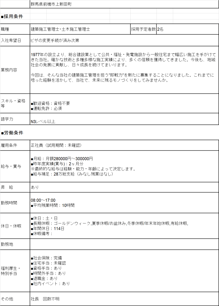 - No 14187 QLTC GunmaQLTCCông trình mảng Kiến Trúc Hoặc Cầu Đường Tùy Ứng Viên Lương 28> Man Deal lương theo năng lực Phụ Cấp Có Yêu Cầu N3 Cứng Kinh Nghiệm Tối thiểu QLTC 6 tháng 年収 Bằng Xây DựngBằng Lái