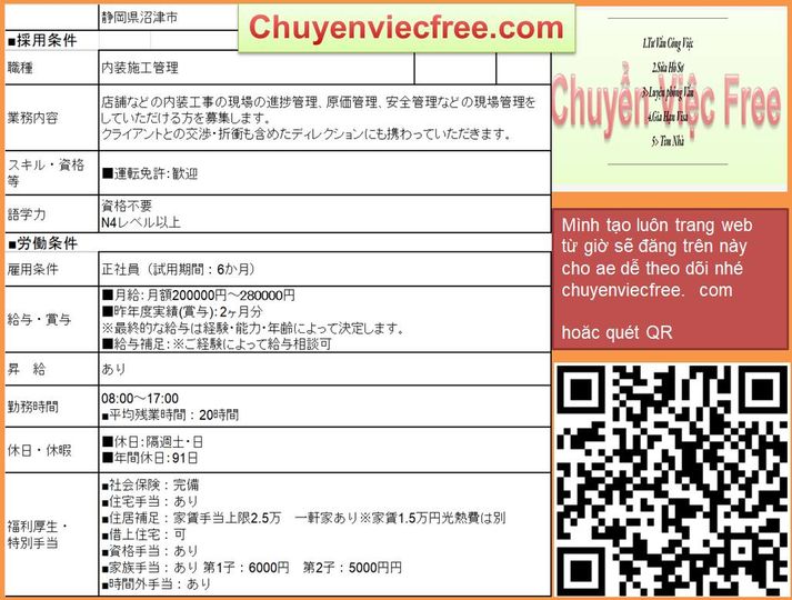 - 4876 QLTC Shizuoka400mQLTC/Thi CôngCầu Đường- Bờ kè- Đê Điều Lương 20> 30Man Deal lương theo năng lực Phụ Cấp Có Nhà/ Kí Túc Yêu Cầu N3 CứngCó senpai ng Việt Kinh Nghiệm KN QLTC 年収 400以上 Bằng Xây Dựng