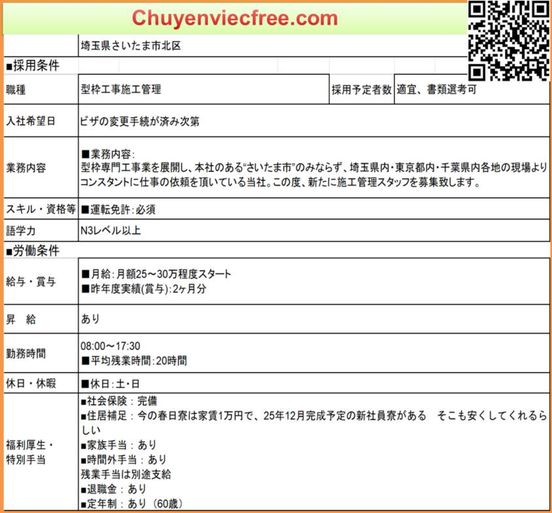 - 17038 Cốp Pha Saitama 25 30 >Cốp Pha Saitama 25 30 >Nhà Cty 1mQLTC/Thi Công 50 50YcKaiwa N4 cứng N3Bằng LáiĐào tạo từ đầu OKShuu mới Ok