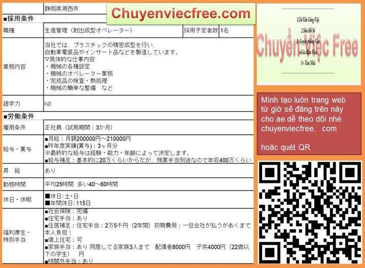 - Mie / IbarakiPhụ Cấp + Hỗ Trợ tùy thuộc ứng viên và PV nhé ae